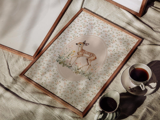 Nursery Wall Art Print – Floral Cottagecore Deer (Digital Download)