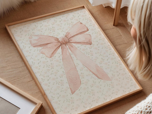 Blush Pink Bow Print - Cottagecore Nursery Wall Decor (Digital Download)