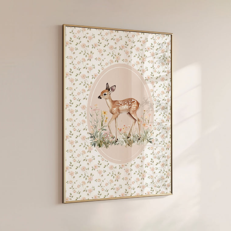 Nursery Wall Art Print – Floral Cottagecore Deer (Digital Download)